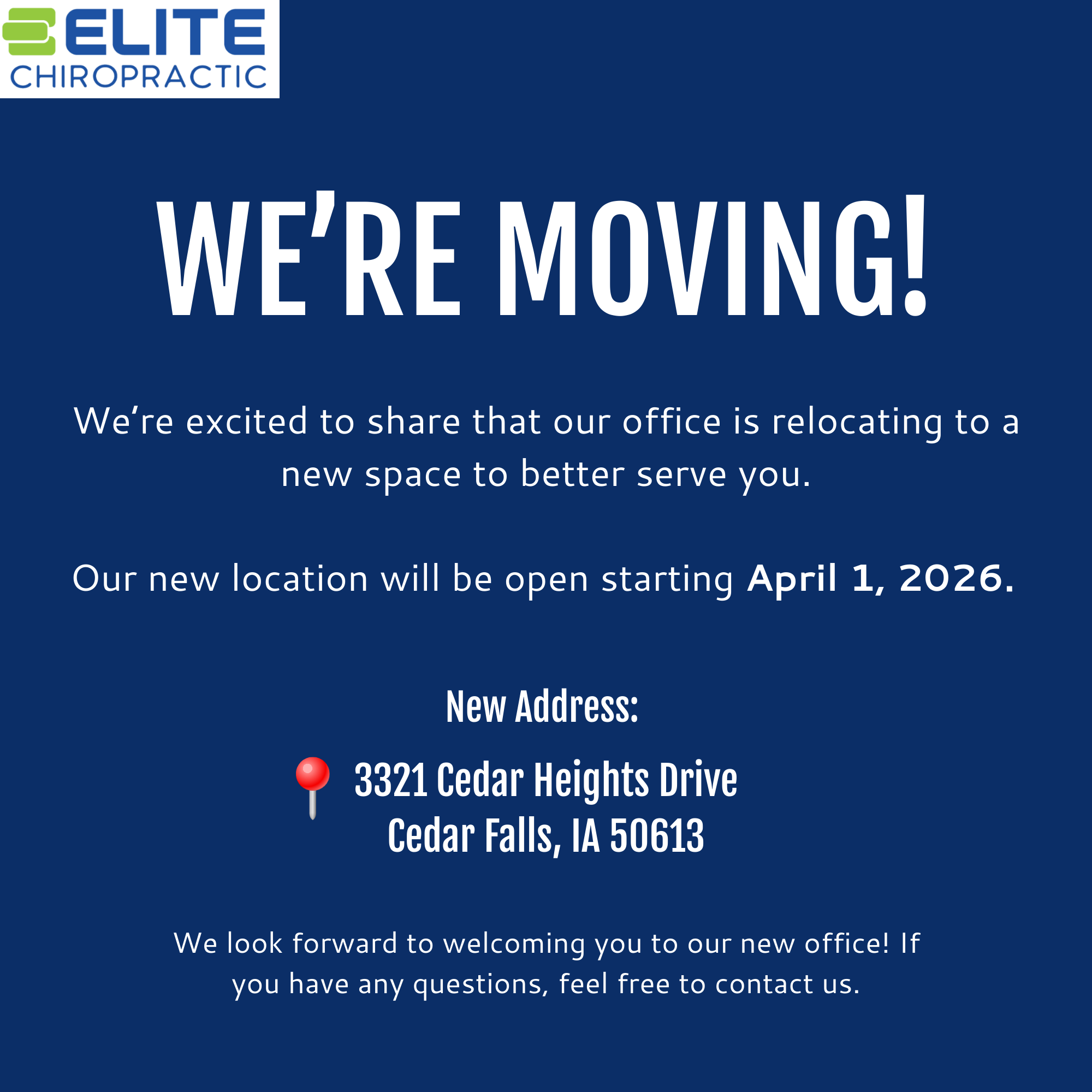 At Elite Chiropractic and Wellness, the focus is put on the cause of the patient’s problem and not just masking the symptoms. Dr. Derrick uses a whole body approach when treating his patients. Not only will the physical aspect of care be addressed, but other areas such as chemical, emotional, and spiritual components will be incorporated into a patient’s care plan. Dr. Benner has helped many in the Waterloo and Cedar Falls area heal from chronic back and neck pain without expensive surgery, and is also a skilled pediatric chiropractor and treats patients of all ages, even newborns. We look forward to meeting you and helping you live a healthy, pain-free life.